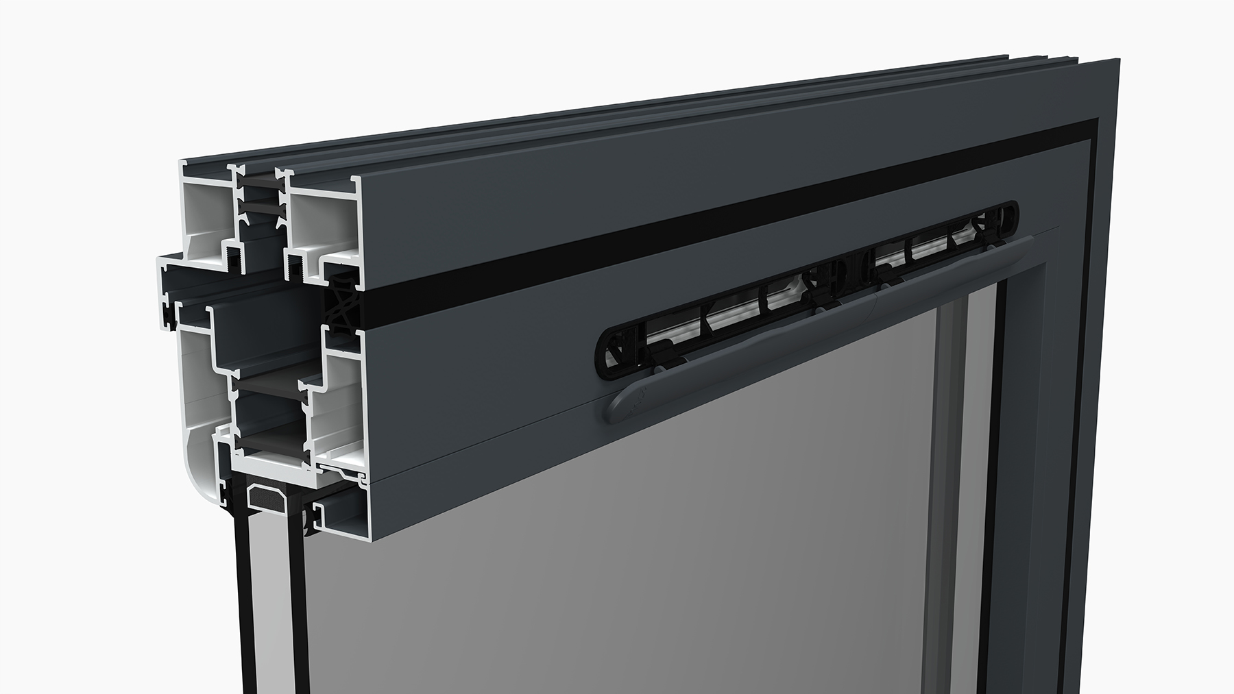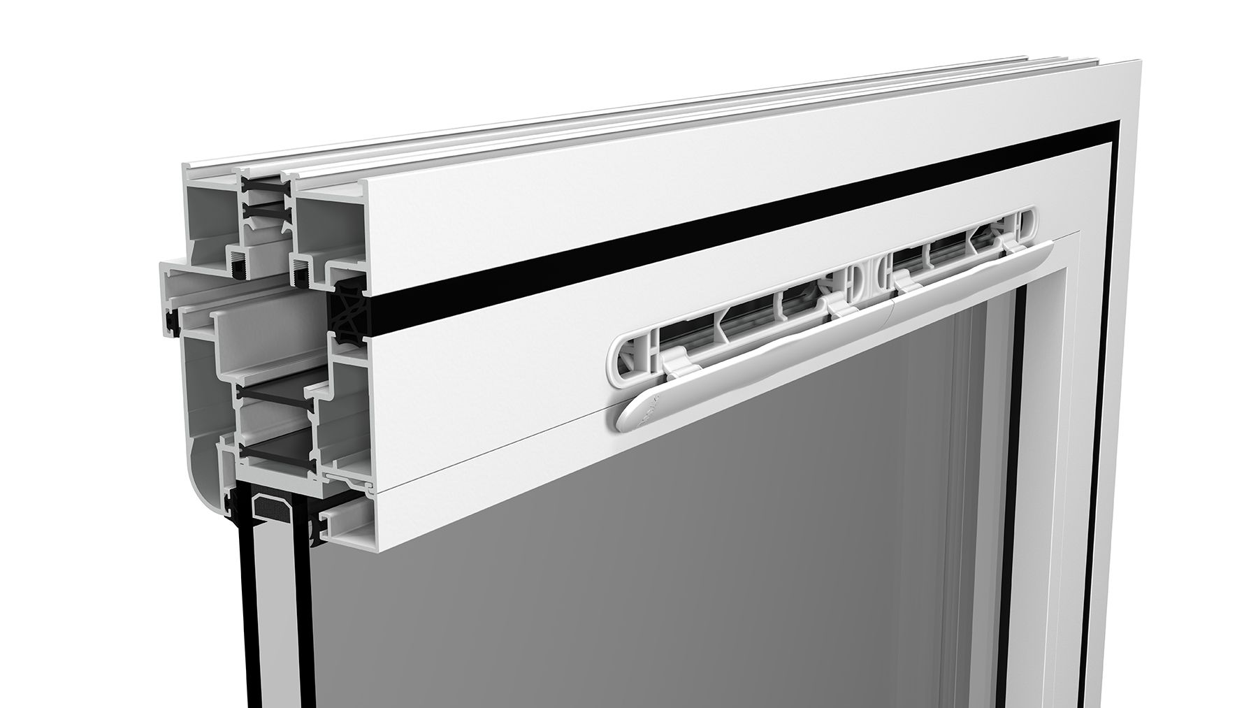 The external section has a new louvered design, to give the minimum amount of protrusion from the face of the profile. The louvred flyscreen will sit beneath the reveal giving additional protection from the elements.